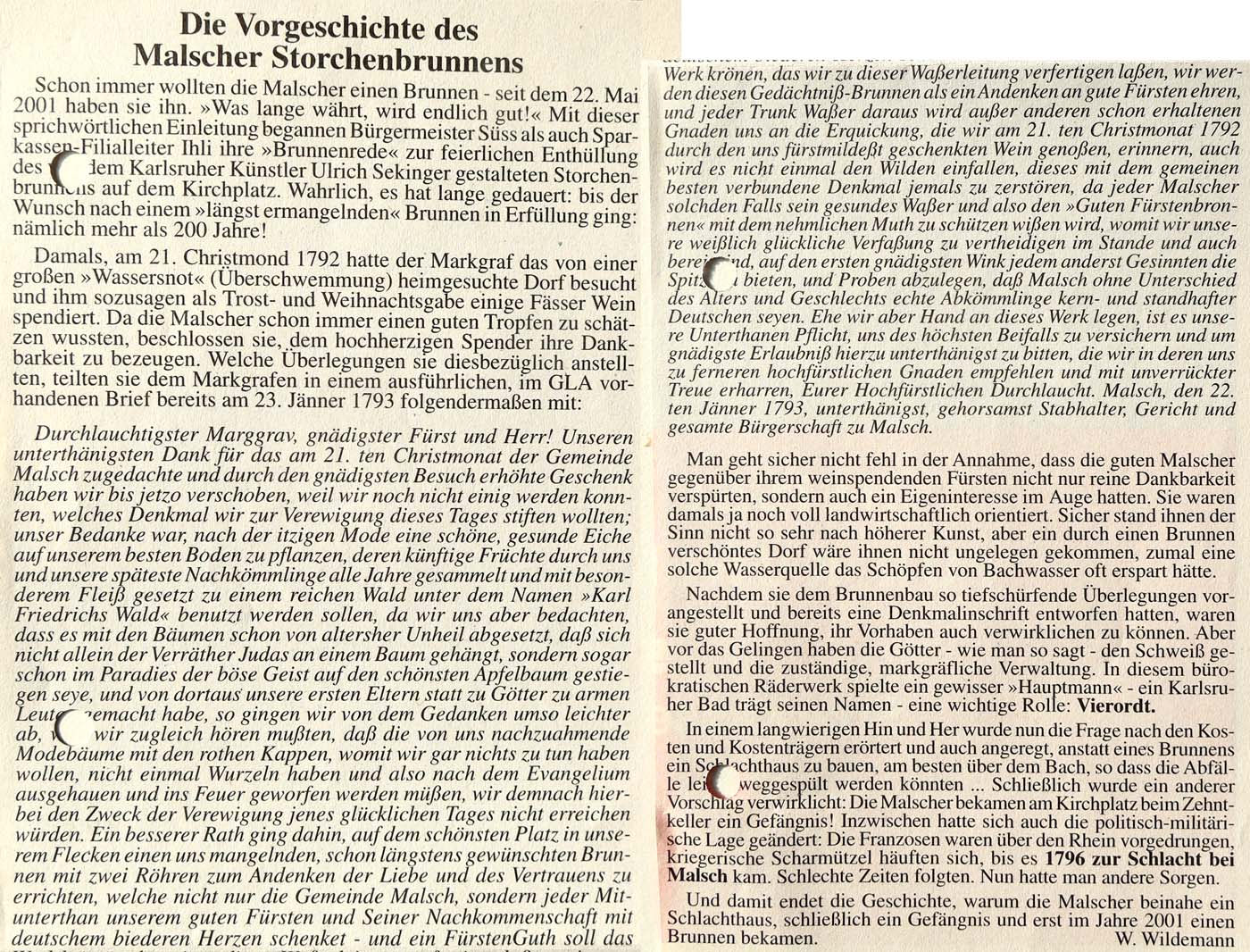 Eine Dokumentation Uber Das Malscher Wahrzeichen Den Storch Heimatfreunde Malsch E V